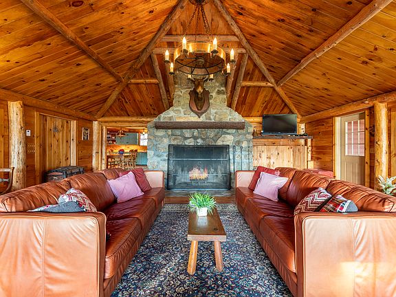 Expansive recreation wingSouth-facing beachYear-round log homeOpen lawnDramatic cathedral ceilingHeated inground poolDeep three-sided wrap-around porch
