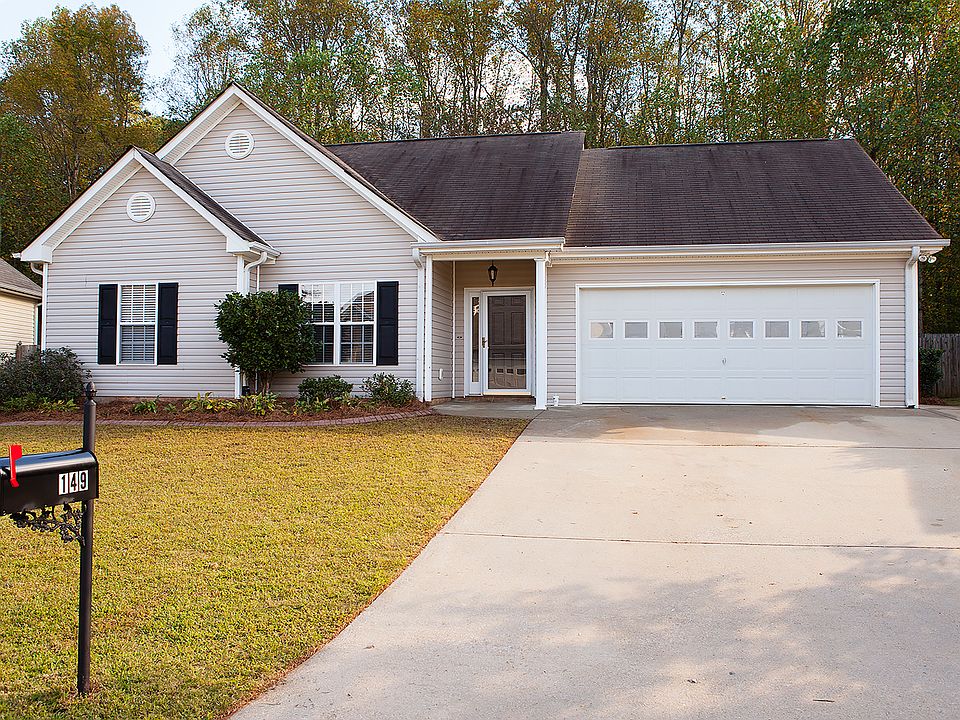 Adorable, move-in ready ranch home on quiet street. Gleaming rough hewn hardwood flooring throughout living areas. Corner fireplace with gas logs. Master on main with trey ceiling. 2-car garage has been transformed into an office w/ built-in desk, but seller will convert back if buyer desires. Attic above garage completely decked for storage. Private, fenced yard with extended patio. Cute deck overlooking wooded area. Home freshly pressure washed, carpets cleaned, roof & HVAC inspected. Convenient location, fantastic schools, and NO HOA!!