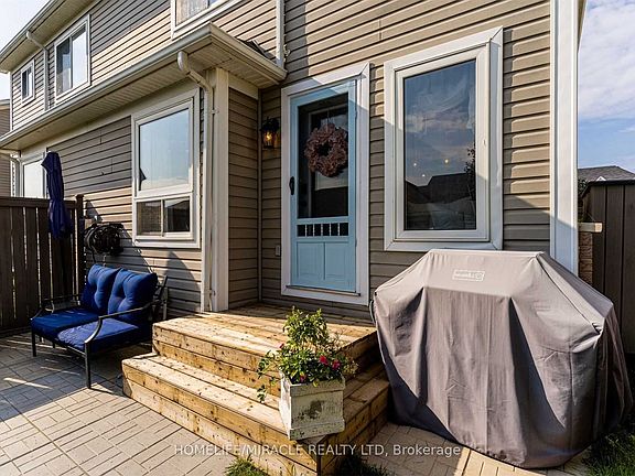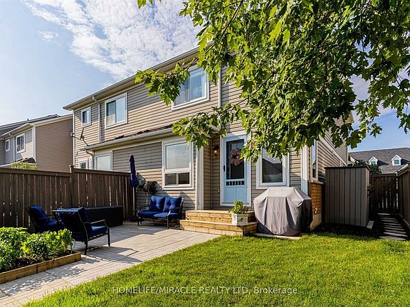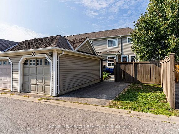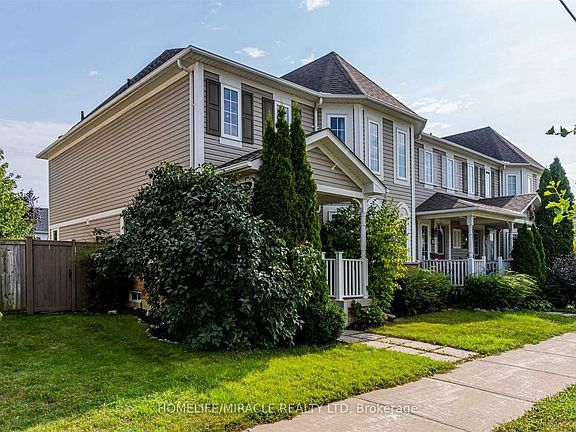 Excellent Location In The Heart Of Brooklin With excellent School close by. End Unit Townhome, 3+1 Beds 3 Baths, Detached Garage+2 Parking Spaces, On A Deep 100 Ft Lot. Bright & Open Concept Layout On Main Floor Upgraded Laminate Floors & Baseboards, Updated Powder Room, Updated Kitchen. Refreshed Staircase & 2nd Floor Baths! Large Kitchen W/Quartz Counter Top, Walk-Out To A Private Deck, Garden, Yard with storage & Access To The Convenient Detached Garage. Additional Family Room W/Cozy Gas Fireplace. Upstairs Offers 3 Generous Bedrooms. New Garage Roof Installed in 2022. New Furnace Installed In 2022. New Fence Posts InstalledIn 2024 (Front Gate,Back Gate,And Left Side Common Fence). Extra Freezer In Basement.