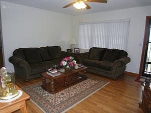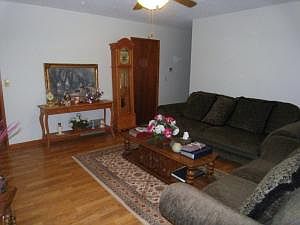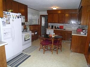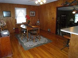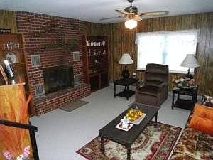 Neat as a pin! Brick 3 BR, 11/2 BA home offers a lot for the price. Lrg Oak kitchen w/breakfast bar, all appl. stay. dining rm w/lovely wood floors opens to sunken den w/gas fireplace. Living room, MBR, and 2nd BR have newer laminate flooring. Covered patio and deck, brick storage bldg., 2 car attached garage. Metal roof. New septic system installed approx 10yrs. 1000 gal. concrete tank.
