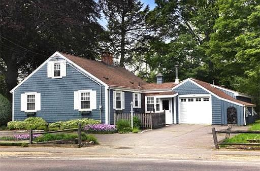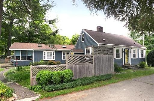 Open Saturday June 14, 12-2....Expansive Cape style home situated on a nice lot with mature trees and beautiful back yard, plus a one car garage attached garage and a large detached barn/garage with loft storage area and work area. This home boasts a generous sized, sunken rear family room with vaulted ceilings, a breakfast nook, brick and slate floors, stained pine on the walls and ceiling with skylights, sitting area with woodstove, plus a formal living room with fireplace and bow window overlooking the rear of the property. The kitchen has a breakfast bar plus a staircase to the walk up large unfinished attic. Smart updates include a young roof, boiler, and gutter helmets. Rear yard is idyllic with perennial gardens, a screened porch and an attached ground level deck. Flexible parking with a long driveway and a front circular driveway. Welcome home to Georgetown.