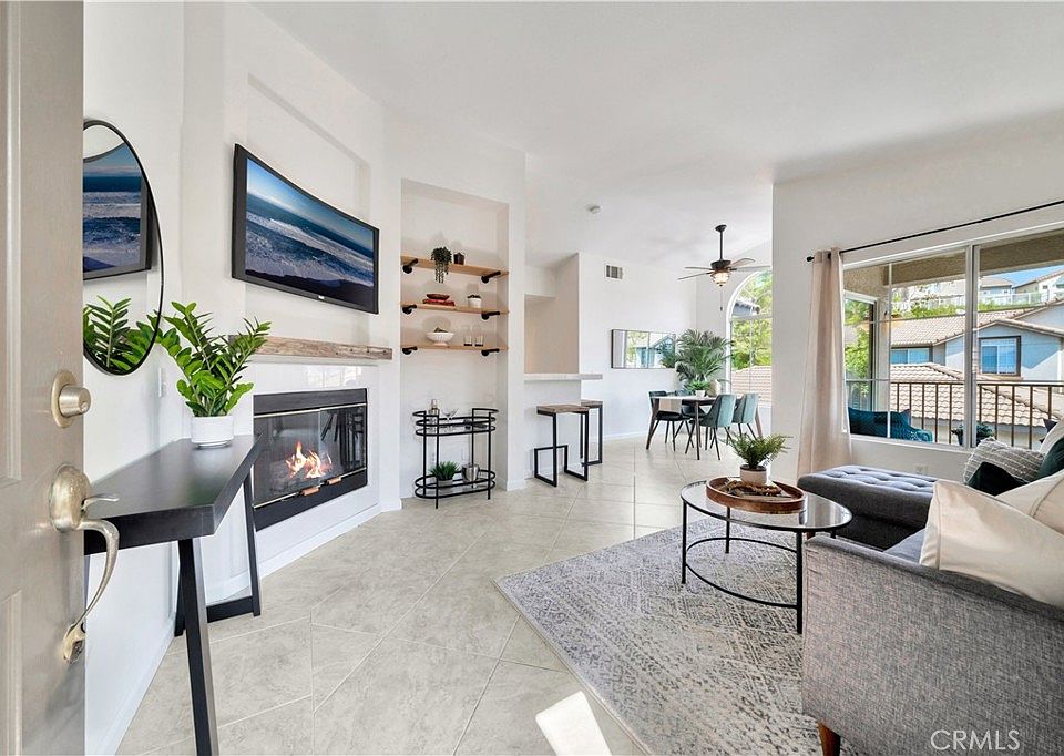 Welcome to this beautifully maintained, newly painted, private end-unit carriage home, perfectly nestled in the desirable Salerno tract of Foothill Ranch. With no neighbors above or below and large windows offering serene views of the surrounding trees, this home feels like your own personal treehouse retreat. The open floor plan and soaring vaulted ceilings create a bright and airy feel throughout the space. The master suite is generously sized with a large walk-in closet for ample storage. The expansive living room is centered around a cozy fireplace, flowing seamlessly into the formal dining area, which opens up to your very own private, covered patio—ideal for relaxing or entertaining. The home also features an in-unit laundry area with room for a full-size washer and dryer. This community is well-kept and offers access to a pool and spa for your enjoyment. The home includes a 1-car detached garage and ample guest parking within the complex. Don’t miss out on this opportunity to own a truly special home!