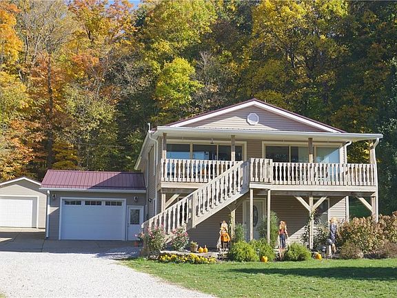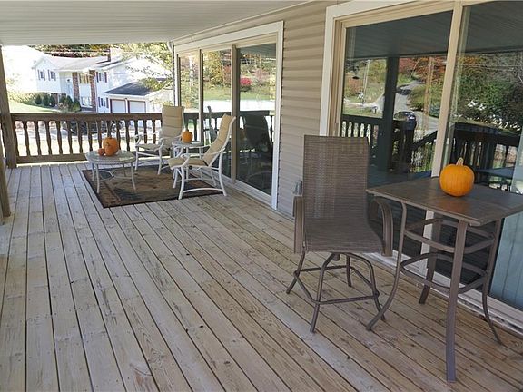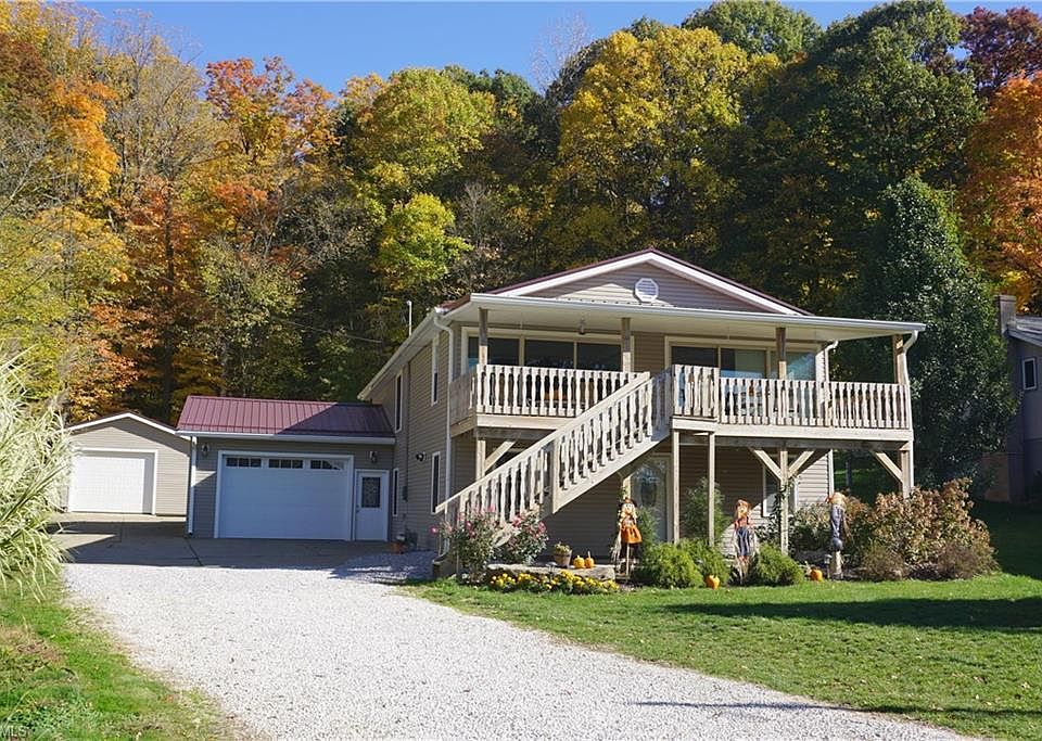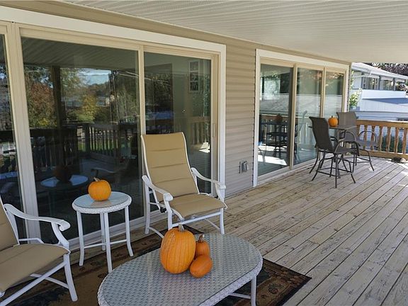 WATER VIEW home nestled on flat lot and convenient to docking area. Nicely updated kitchen w/ granite counters and mosaic tile back splash. Includes soft close cabinetry drawers and stainless steel appliances that are 4 years old. From the living area and the sunroom/office are two large sliding glass doors that lead to covered deck where you can experience beautiful sunset views over the lake. Custom bar in family room with sink, lighting, mini fridge, ice maker and concrete counters. This is great area for entertaining! Gas furnace is 4 yrs old, metal roof and vinyl siding is 7 yrs old, colored cement patio in 2020. Additional improvements include: 200 amp service, home was professionally waterproofed, exterior drainage added, newly remodeled full bath, house and front deck were power washed 2020. Wood deck is 8 years old. Enjoy evenings sitting around the firepit or relaxing in the hot tub. Cement pad behind home is ideal for boat or RV parking. Lake Mohawk is a private, gated community with tennis courts, baseball field, clubhouse and 500 acre lake for boating (unlimited horsepower), swimming and fishing. Separate membership for golf course. Convenient to Akron, Cleveland and Pittsburgh areas.