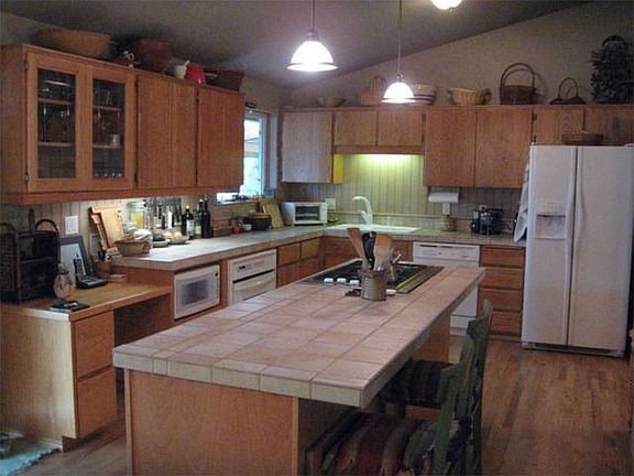 Great home with park-like setting, on a cul-de-sac. 3 bedrooms, 2 baths, 1704 sq ft, built in 1998. 3 car detached garage with 220 electric. Hardwood floors, gas fireplace, wonderful island kitchen with tiled counters. French doors lead to the office/den or 3rd bedroom. Large covered deck in backyard. Newer a/c system and forced air gas heat. Pet considered. This is a non-smoking home.