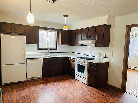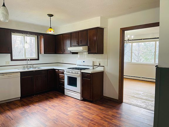 Outside, this one acre lot is surrounded by wood, which provides some privacy and peace and quiet. A 2-car garage can make winters more manageable by not having to brush the snow off your car, or can be a place to store all the toys. The secondary out building is a great space for a workshop or additional garage space.