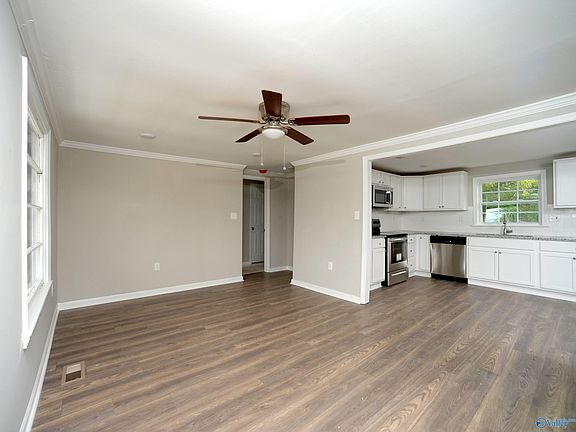 Fully renovated with NEW plumbing, electric, HVAC, and roof. Large utility room, beautiful LVP floors throughout main areas. Smooth ceilings and crown. Newly updated kitchen features granite counter tops, new cabinets, tile backsplash. New carpet in all 3 spacious bedrooms. Master bedroom features a walk-in closet and walk-in shower in ensuite bathroom. Enjoy the beautiful view off your covered front porch. Off-street parking. Convenient to 565, Redstone Arsenal, and just 15 minutes from downtown Huntsville.
