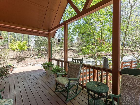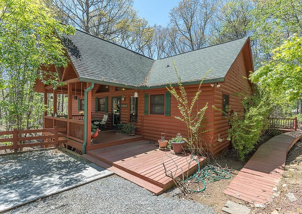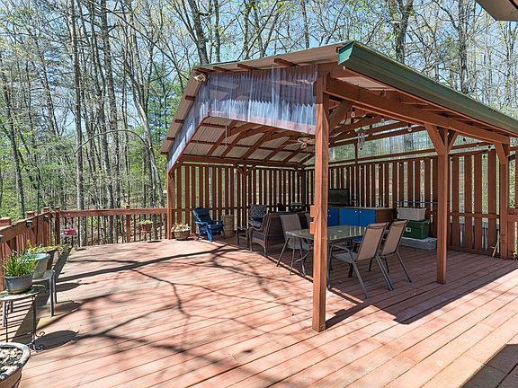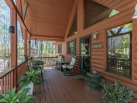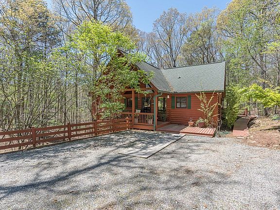 If you're weary of cookie-cutter homes that lack character, this Chalet-ranch style beauty will capture your imagination. Tired of cramped spaces? Here, you'll enjoy spacious and thoughtful design throughout, with 1307 sq ft to call your own. Inside, the impressive stone fireplace grabs your attention, extending from floor to vaulted ceiling, a statement piece in the grand living area. It's an ideal setting to relax or entertain, with natural light streaming through large windows, highlighting the stunning wood floors. The tongue-and-groove wood ceilings and matching trim create a warm, inviting atmosphere that resonates throughout the home. Your culinary creativity will flourish in the gourmet kitchen, complete with matching cabinets, stainless steel appliances, and a versatile kitchen island. The laundry room, which doubles as a pantry, keeps everyday tasks simple and organized, letting you focus on enjoying your new home. But the magic doesn't stop indoors. An expansive deck wraps around three sides of the home, providing a breathtaking outdoor living space. Whether you're sipping your morning coffee on the covered front porch or hosting an evening gathering by the outdoor fireplace, every moment here feels like a getaway. Perfectly situated between Murphy and Blairsville, GA, you'll have easy access to both towns while enjoying a generous .90-acre lot. This is more than a house; it's a lifestyle upgrade waiting for you to experience. Home is sold as furnished.