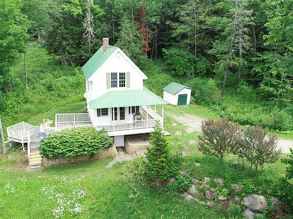 A 2-bedroom Chalet-style home on 10.3 mostly wooded acres. Offers an open floor plan featuring kitchen, living area with wood stove on brick hearth and wall-mount propane furnace, and half-bath. The second floor has 2 bedrooms and full bath. Wraparound porch/deck looks over front yard. Easy access from I-91 and close to year-round activities at Jay Peak Resort. Would make a great second home or primary residence!