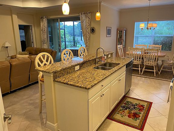 Will honor 2% buyer agent fee. This beautiful home is situated on a Southern exposed, premium lake lot. Located in a new, gated community minutes to I-75, shopping, beaches and A rated schools. As soon as you walk in the front door, your eye will be drawn to the gorgeous lake and preserve views. The 2,110 sq ft floor plan offers 3 bedrooms PLUS a den and 3 full baths. The den has double doors for privacy to make a perfect office, play or guest room. This home has been designed with tasteful upgrades. Details have been chosen such as coffered ceilings, crown molding, 5" baseboards, upgraded hardware and neutral, upgraded floor tile installed diagonally throughout the living areas. The kitchen has upgraded granite counters with a breakfast bar. The cabinets have also been upgraded and are finished with crown molding and bump outs. The appliances are stainless, with a gas range and outside venting for the cook in the family. The openness of the living, kitchen and eating area is perfect for entertaining or a family. The large, private master bedroom has a beautiful lake view and two walk in closets. The master en suite has an oversized walk in shower, separate commode, upgraded tile, and upgraded cultured marble double vanity with elegant sink fixtures. The guest baths also have upgraded tile, vanities and granite counters. The large laundry room includes a washer and dryer. This is the least expensive home on the best lake. You can alleviate the hassle of building or waiting - this home is move in ready today!