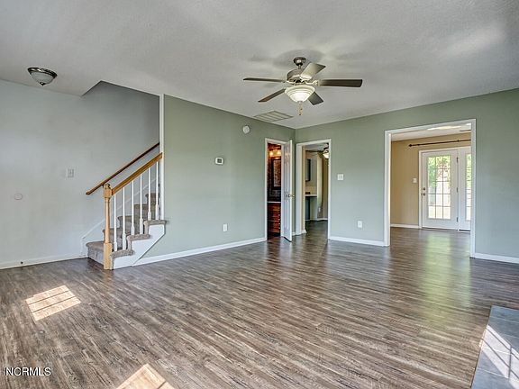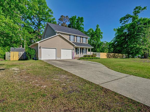 Quiet location in Richlands but just minutes to base. This home sits on a large lot with a privacy fenced back yard. There is room to grow in this 3 bedroom plus a bonus room home. Spacious 18x14 family room with gas log fireplace. The formal dining room leads to the kitchen and breakfast area, nice eat-at bar and appliances included. A half bath completes the 1st floor, upstairs you will find great space with a spacious master suite with adjoining master bathroom with dual vanity sink and separate shower. The 2nd level also has a full hall bathroom and 2 additional bedrooms plus the bonus room that could be a 4th bedroom. This home also features great outdoor living space with a large open deck, built in swing, fenced yard and garden area- plus a shed for additional storage.