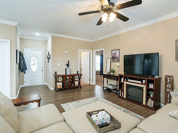 You're going to LOVE this custom built ranch home on a nice flat acre lot! Some of the best features of this home include: a dedicated office, LARGE bedrooms, walk in pantry, spit bedroom design & covered front + back porches! Outside you'll love the fenced back yard & 12' x 16' storage building. Inside you'll enjoy the open concept living spaces, the primary ensuite features a walk in closet, double vanities, spacious soaking tub, walk in shower w/glass door, spare bedrooms both have ceiling fans as well. This home was well thought out when it was built & includes some other nice features: Luxury Vinyl Plank flooring, spacious laundry/mud room, crown molding, custom Amish built mailbox that looks like the house & built in trash cans in the kitchen cabinetry. You'll not be disappointed with this lovely ranch home!