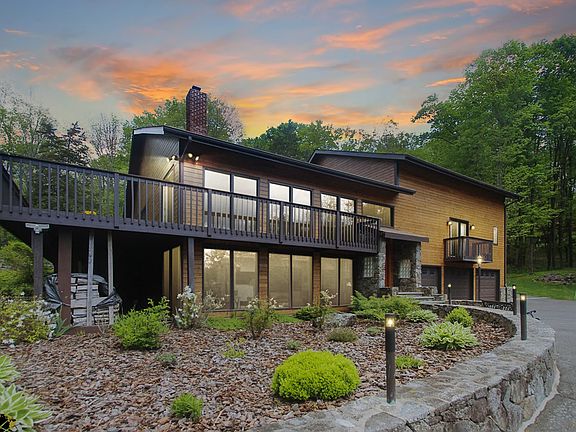 Come home to this exquisite, chic contemporary home featuring a uniquely designed multi-level open floor plan! A dynamic two-story wall of windows brings nature in overlooking the professionally landscaped 13+ acres w/ fresh water pond. This home has been completely restructured & renovated. The sweeping living room w/ valeted ceilings, is open to the comfortable family room below.The outstanding kitchen is designed for every chefâs dream,boasting custom cabinets, granite counters & breakfast bar.The spacious Master Suite w/ dynamic views, cedar closet & bath featuring heated floor & a fully equipped steam shower, 2 additional large bedrooms w/ built-ins & a beautifully appointed hall bathroom. An expansive loft overlook is perfect for a study or play space, w/ access to a walk-in attic. On the LL, is the huge, L-shaped family room equipped w/ a soapstone wood stove, tiled floor & the wall of windows. Also, a 4th bedroom, full bath & access to the garage & work shop. To support your lifestyle, running in the background, this home offers â central vacuum - a security system â an auxiliary generator enhanced - a 1000 gallon oil tank w/ a 250 gal backup â 3 garage bays expandable to 5 bays. Located on a country road, the home is nestled in a privacy knoll w/ southern views & exposures.A lso, potential for use as an Equestrian estate awaits. This exceptional home is conveniently located near I 84 & close to town center & amenities. Rare opportunity â donât miss out! SEE ADDENDUM