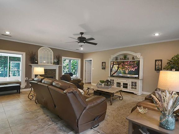 Come see this beautiful home located on a quiet cove! 4 bed(3 down) 3.5 baths, large Great room, huge playroom, updated kitchen, hard surface floors through downstairs, and great outdoor living. This property is on 3.9 beautiful acres and includes a pond, 3 stall barn with tractor storage, a shop, and a shed. Expandable area above garage is sheet rocked. It's perfect for those wanting to live a simple and cozy life where you can spend your days relaxing in the sunroom or around the firepit.