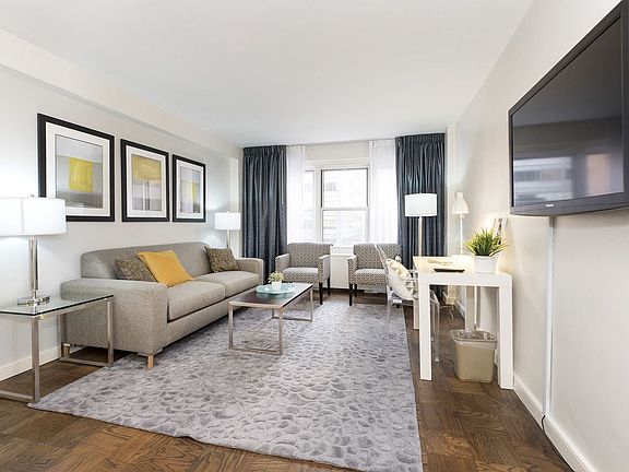 Flexible Lease Terms 1 month 5400 2-6 months 4000 More than 6 months - rate on request NYC Occupancy Taxes will apply for leases less than 6 months. Listed by Murray Hill East Suites, LLC. Commission paid by owner. Fully furnished luxury one bedroom in Midtown East. This great apartment has everything you need from bed linens to kitchenware. Building features 24 hour doorman, Concierge Services, Free Gym and Business Center, Complimentary Housekeeping, Courtyard, and Laundry Room. Ideally suited for short and long term stays. Conveniently located just steps away from Grand Central Station, the United Nations and close to Fifth Avenue, Rockefeller Center, the Broadway Theater District and much more.
