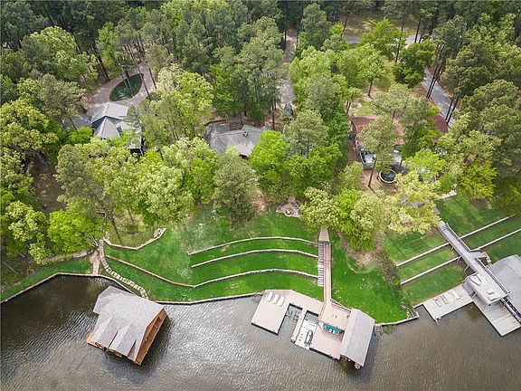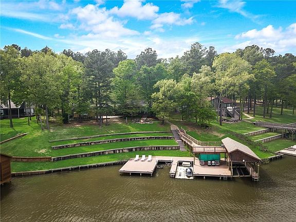 Comfort in the Cove! Living made easy in this impressive, generously spacious residence with lake views from every room in the house. Enjoy gatherings in the large, open living and dining area graced by a fireplace, floor to ceiling windows and glass doors that lead out to the rear deck. Spanning over 2600 square feet, this home is an entertainers dream; whether sitting next to the two fire pits near the water or relaxing in one of the two living areas. The spacious kitchen will inspire your inner chef. Large boat dock with 3 stalls, tanning deck, and enclosed entertainment space. Whether you're looking for a luxurious weekend house, or a place to call home with plenty of storage space, look no further!