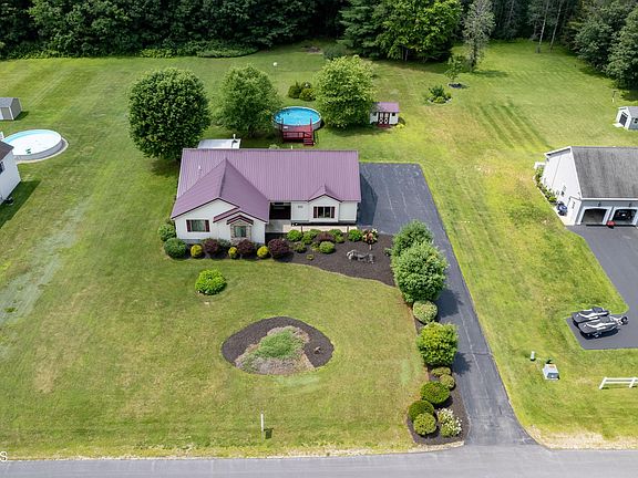 Gorgeous newer home on 1.7 acres in lovely, quiet neighborhood! Open concept, One floor living. Stunning Great room with cathedral ceilings & gas fireplace. 3 season Sunroom overlooking massive back yard & pool. Primary Bedroom suite. Partially finished basement with lots of room to expand. Huge 2 car garage with extra side storage area. Dining area options: great room or kitchen plus island. Combined mudroom & Laundry at garage & back entrance. Also staying as is: pool table, extra fridge & switch. This could be your forever home, so many possibilities to make it yours!