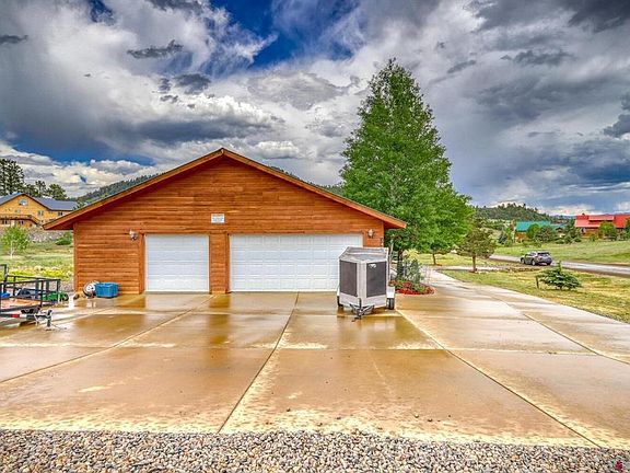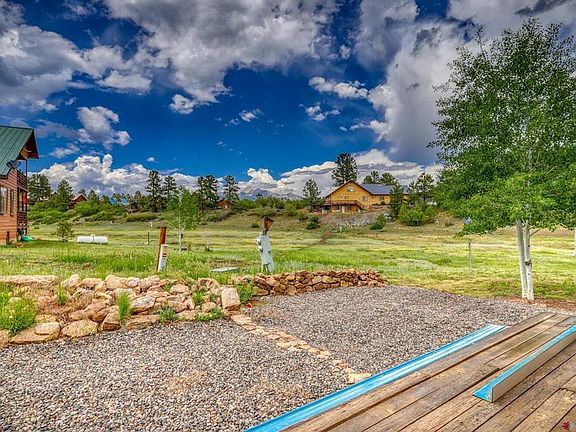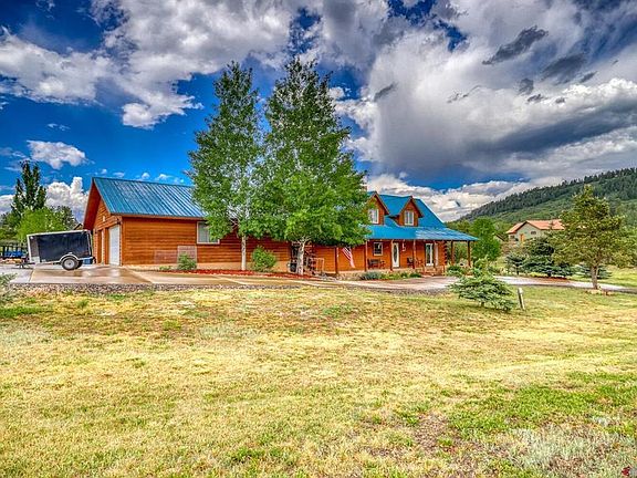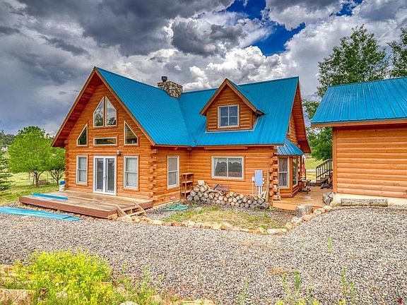 Beautiful and warmly inviting Colorado D-log home with cabin feel near picturesque Lake Hatcher. Just a mile up the road is the major access point to massive quantities of National Forest, miles of improved recreation trails, the largest Wilderness Area in the lower 48 and some of the most stunning alpine beauty in the state. Oh, and the views to the back of this home take in several of the rugged north range San Juan peaks. This is an oversized .52 acre double-lot with beautiful mature landscaping, including fruit trees, pines and aspen. The home is adjacent to a 1.37 acre lot with fire house and a 33 acre greenbelt with tranquil meadow ambiance on two sides of it's corner lot location. This wonderful custom home also boasts a full covered front deck, large north-facing back deck facing the valley and peaks yet there is paved roads less than a block away. Once inside you'll find some really terrific finish upgrades including, in part; custom tile work, log accent handrails, custom log and chain fireplace mantle and warm wood T&G ceilings plus exposed rough-sawn beams and real wood walls throughout (I can't find any drywall in the home). The towering ceilings inside, punctuated by a massive rock faced wood burning fireplace as a design focal point and are icing on the cake. The kitchen is upgraded with hickory cabinets and center island. You'll love the antique southern yellow pine and hickory flooring and the convenience of a main floor master suite. The master bath is handicap accessible. The floor plan of the home makes the most of it's design. Did I mention the large oversized three car detached garage with concrete floors and the sculptured concrete driveway? This home has something special for everyone and it has incredible curb appeal. You'll walk into the home and instantly envision yourself enjoying a warm fire in the fireplace on that winter day or grabbing your poles, bikes or hiking gear, only to return later to relax on the deck and take in the sunset from your cozy Colorado cabin. Act quickly, inventory in this price range is extremely limited and this charming home will check many of your boxes.