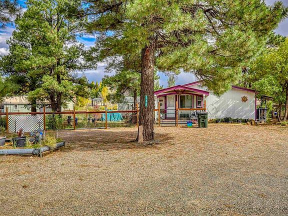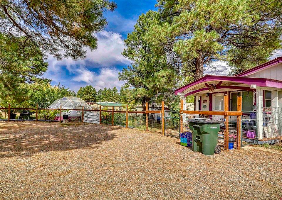 Welcome to 149 Fireside Street, a spacious and beautifully maintained double-wide home that sits on a third of an acre, offering all the comfort and charm of a traditional house. This unique offering includes 2 consolidated lots with a gorgeous fenced-in yard. With vaulted ceilings and quality drywall throughout, this property provides an inviting and open atmosphere perfect for relaxed living. Watched over by 8 mature Ponderosa Pines, the home boasts a serene retreat. Enjoy the outdoors in your fully- fenced yard, featuring mature garden beds, flourishing fruit trees and shrubs. For year-round gardening, take advantage of the included Grow Dome, perfect for cultivating food and flowers no matter the season. The exterior offers ample parking, a large deck overlooking the gardens, ideal for outdoor gatherings, and a covered entry porch for quiet mornings with a cup of coffee. A large storage shed and a garden shed provide plenty of room for all your outdoor gear, while the wood-burning stove inside adds a cozy touch during colder months. If you're seeking a peaceful oasis with plenty of space and amenities, 149 Fireside Street is the perfect place to call home.