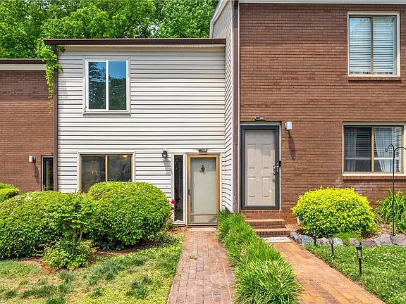 Welcome to this charming 2 story townhome in the sought after Forest Oak community! Featuring vinyl plank flooring throughout both levels. Enjoy a cozy fireplace downstairs and the convenience of ensuite bathrooms in both bedrooms. Recent updates include a new bathtub, fresh paint, new sliding glass doors, and updated decking off the primary bedroom. The neighborhood also offers a fenced in pool—perfect for summer! All just minutes from Hanes Mall, shopping, and dining.