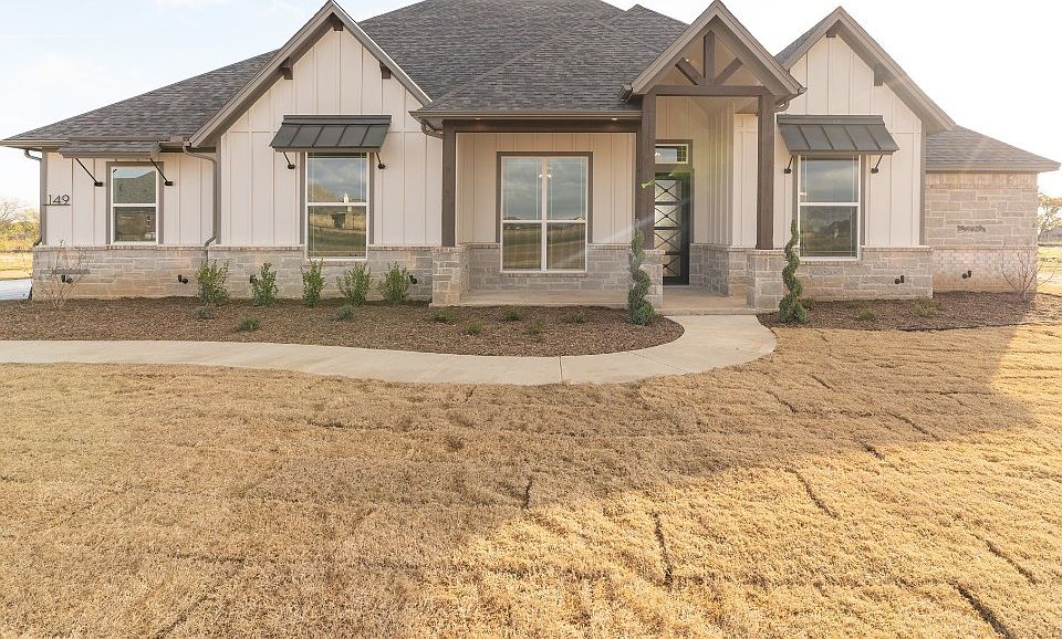 Beautiful Bailee home that is a 3 bedroom with a game room or a 4 bedroom home with 2 and half bathrooms. This wonderful home is situated on 2 acres, private well, no city taxes or HOA. Stunning office with decorative ceiling, shiplap accent wall, sconces and a painted barn door. The kitchen features a huge island with quartz, farm house sink, gas cooktop, double ovens and a walk in pantry. Wonderful family room with beamed, raked ceiling, crown molding, stone fireplace and plenty of windows. Primary bedroom offers tiled floors, ceiling fan, crown molding and primary bath has separate vanities, Hollywood tub, walk through shower with two shower heads. Extras to this already amazing home are the huge patio with fireplace, foam encapsulation, recirculating hot water heater for instant hot plus builder incentives of $10,000 to buy down interest rate or closing costs. Use our preferred lender to pay title.