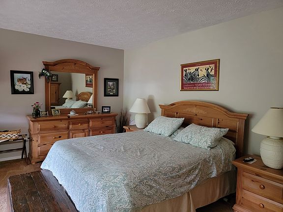 Lovely Town House in Gated Mill Creek. 2 Bedroom 2 Bath. Screened in deck and a garage. Main level has open floor plan with Kithchen, Dining, and living room. Views of the Mountains and golf course. A gas log stone fireplace makes it cozy in the cooler months. Bedroom and Full remodeled bath on main, large bedroom and bath on lower with a large laundry room.