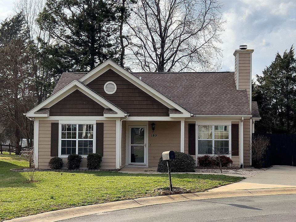 Welcome home to this charming single story ranch located at the end of the cul-de sac. Home has just had a refresh with new interior paint and carpet throughout. Spacious living area with vaulted ceiling and fireplace. New HVAC was just replaced in 2022 and the roof was redone in 2014. Great Location-convenient to shopping, dining and the downtown Mooresville area.