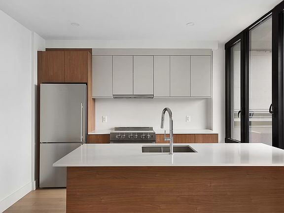 A study in light and sophisticated design awaits you in waterfront Greenpoint. 149 Green is a brand new and RARE 9-unit ELEVATOR condominium offering floor-to-ceiling windows, private outdoor spaces, in-unit washer/dryers, designer kitchens and baths, and spacious living and sleeping quarters on a block close to every amenity you desire, on charming Green street between Manhattan and Franklin avenues, steps to Transmitter Park, the Ferry to Manhattan, and artisanal shops and dining galore. This magnificent floor-through 2-bedroom apartment with a massive private outdoor terrace features a private key-locked elevator opening directly into your living space. Offering the ultimate in indoor/outdoor living, greet the day with coffee or tea in your spacious kitchen with center island, or host evening cocktails on your large terrace with Manhattan and skyline views. On the other end of the apartment, a private, South-facing primary suite and adjacent guest bedroom offer floor-to-ceiling windows, incredible South-facing light, and space for both lounging and sleeping in comfort. There is even a dressing room in your primary suite! Be greeted by a striking brick and steel façade, ascend the elevator, and enter into your tranquil abode to find floor-to-ceiling sunny South-facing views (many with balconies!), and dramatic open North-facing views looking out at the peaceful gardens of Greenpoint, many with views of Manhattan! Create a meal in your spacious, open, and understated but stylish mid-century Modern inspired kitchen. With stainless steel appliances, practical and wide Quartz countertops and matching backsplash, and an extra-deep stainless steel sink, you'll be at ease when preparing culinary delights or entertaining guests. Custom walnut and matte laquer cabinetry offers endless functional storage space to tuck all your cooking accoutrements and gourmet products away. An unexpected vented range provides a fantastic and functional luxury rarely found in many new developments and appeals to real chefs! Bathrooms are awash in large format limestone tiling from floor-to-ceiling, and also include blackened steel fixtures, extra deep soaking tubs, custom walnut vanities with spacious medicine cabinets, and unique Art Deco-style lighting. A large utility closet includes your very own garbage chute, and don't miss the in-unit Bosch washer/dryer, wide plank oak floors, recessed lighting, and Daikin heating and cooling systems with multiple zones. These homes are a respite from the city that lies outside your door and the ultimate in comfort and convenience at every turn. 149 Green is a rare breed of building. Small and intimate with an inspired and unique design on a fantastic block, featuring an elevator and both leafy green AND waterfront views. A ButterflyMX video keyless entry system allows you to grant entry to yourself and others from your phone, and allows packages to be picked up and delivered. There is also a large bike room on the main level for ease, and included in the price is a private storage cage in the basement for each unit. Close to the shops, amenities and restaurants -- both cutting edge and comforting -- of Greenpoint and, slightly further afield, Williamsburg, you will want for nothing here. Greenspaces include Transmitter, McCarren, and McGolrick Parks. Just one block to the Greenpoint waterfront, from which you can access the ferry at India Street to reach Manhattan with ease. The G train at Greenpoint Ave is close as well. The complete offering terms are in the offering plan, which is available from the sponsor. CD21-0021
