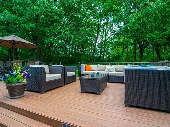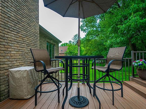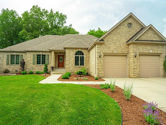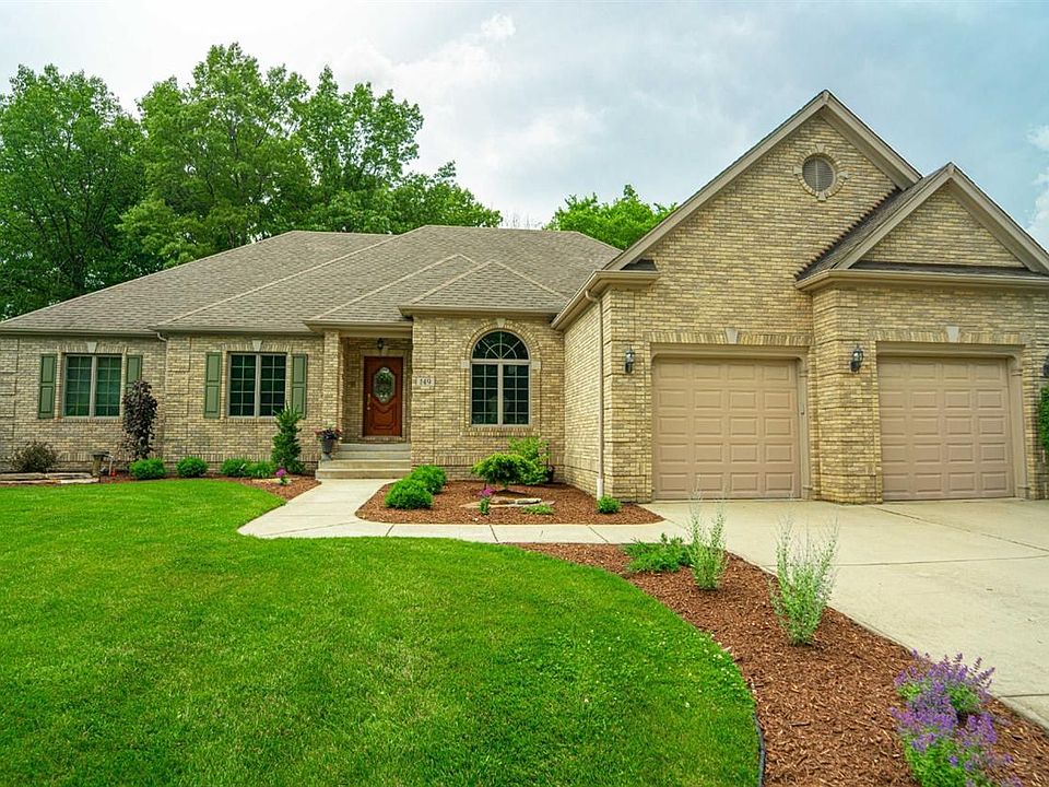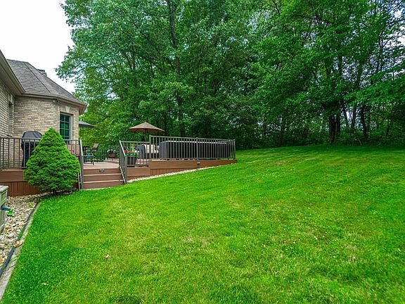 ALL BRICK RANCH. Maintenance free with a gorgeous trex deck overlooking the beautiful back yard that back up to woods for privacy. This home is in move in condition. Decorated beautifully with neutral colors, immaculately kept. The home features a cozy living room large dining room and family room with skylights , cathedral ceiling and 2 story brick fireplace. The large gourmet kitchen with corian counter tops and island is perfect for cooking and entertaining. two bedrooms share a J/J bath at one end of the house and the large master suite with tray ceilings overlooks the front yard. Large master bath with dble vanity, separate shower and tub. The finished basement is great for entertaining with a TV area, large rec room 40x20. 2 finished large rooms, 1 perfect for 4th bdrm (closet but no egress window) and another perfect for office/workout area. Pool table portable bar stay. Also half bath in basement level. Over sized garage. sprinkler system and security system included.