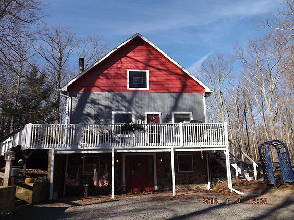 Renovated Chalet In A Quiet Community. Features Include a Spacious Living Room with Hardwood Floor, 2-Story Spiral Staircase,Wood Stove w/Pennsylvania Blue Stone Mantel and Access to the Deck, Vaulted T&G Beamed Ceiling, Kitchen Cabinets w/Espresso Finish & Frosted Glass Doors and Granite Counters, Master Bedroom Suite with Beamed Ceiling, WIC and Access to the Deck, Master Bath has His/Her Granite Vanity, No Door Tiled Shower w/Dual Heads and Clawfoot Tub, Cozy Loft Area Open to LR & Kitchen, Family Room with Whitewashed Porcelain Tile & Kitchenette, Full Bath with Jetted Tub, Expansive Wrap Around Deck, Lg Detached Barn has a Workshop, 2nd Floor Hobby Area, Stackable W/D & Half Bath. All On 2+ Acres of Privacy. This Is A Home You Must See!
