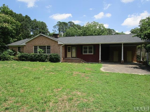 Spacious home on over 3 acres just minutes from downtown Edenton. Home includes 3 bedrooms, 2 bathrooms, living room, den, dining room, and attached carport. The roof was just recently replaced! With a little interior TLC this could be a very nice home!