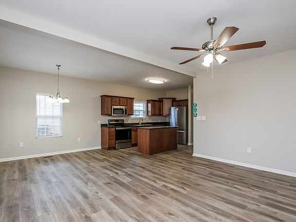 Vinyl plank flooringWalk-in closetDual vanity sinksStainless steel appliancesLighted ceiling fan