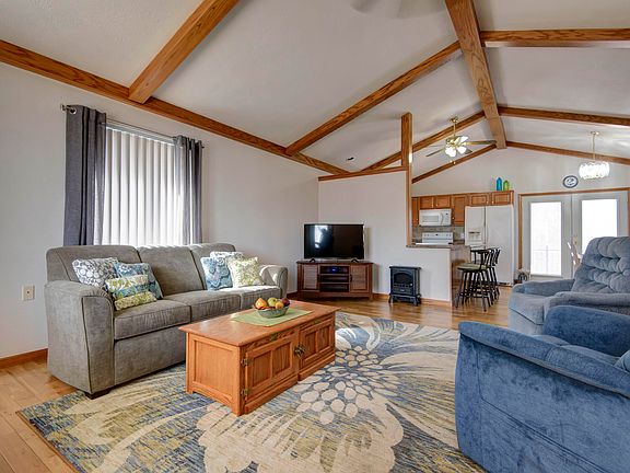 Peace and serenity with amazing amenities just a few minutes up the path! This lovely 3 bedroom, 2.5 bath, fully furnished (yes, I said fully furnished!) home comes with beautiful exposed wooden beams, a mother in law suite option, and an RV/ boat pad! It is located within Forest Park Estates meaning a Treasure Lake membership will be an option for only $180/year! Owners may drive their golf cart right up the road to the pool, mini golf, and numerous community activities throughout the year including dances, bingo, and fireworks on the 4th of July! The garage will hold one car and your golf cart, while you park your boat or RV on the pad with water and electric accessible. There is also a water spigot inside the garage, as well as a built in ramp into the home, several built in cabinets for storage, and 2 large cork boards set up for hanging tools. There is space for raised garden beds, or tomato/ vegetable plants on the lower level for those with a green thumb. This home has the best of everything to offer, with the greatest neighbors in a darling neighborhood. This would make a wonderful full time or vacation home right in the heart of Branson!