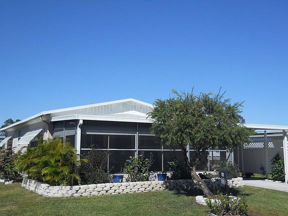 EASY LIVING IN THIS HOLIDAY PARK HOME! Located in a unique 55+ manufactured home community that the residents own (not a developer), this 2BR/2BA doublewide has what is needed to enjoy the snowbird life, or to live year'round affordably. Desirable features include lots of cabinet space in the kitchen & dining area, a breakfast bar, & all appliances stay including range, refrigerator & dishwasher. The living rm & the master bedrm are of good size, the master bath dressing area & closets are separate from the toilet & shower & a screened enclosure w/ roll-down shutters is in the front of the home to enjoy morning coffee or for entertaining. An added-on den can be used as extra sleeping quarters for guests, adjacent to the den is the utility room w/ more storage space & the washer & dryer.