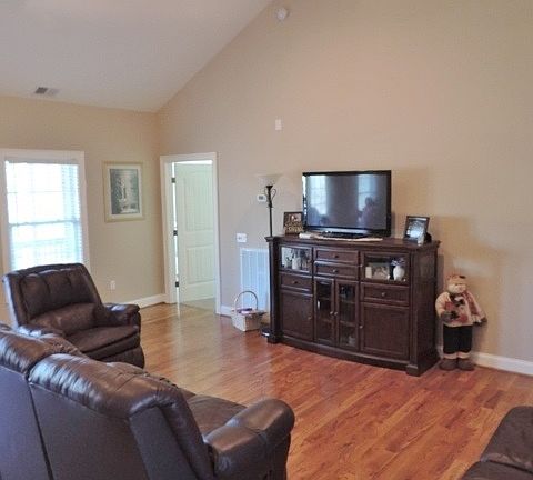 You will find a gracious amount of space through out this home with bonus room and the unfinished basement area. The main area of this home has a large living room with vaulted ceiling and hardwood floors. Off of the living room is the master suite with trey ceiling, separate closet spaces, large master bathroom with whirlpool tub and walk in shower. Two guest bedrooms share a full bathroom. Cooking in the kitchen is simple but sophisticated with rich wood cabinets, and stainless steel appliances. Off of the living room is the upper back deck where you can enjoy cookouts with friends or just sit in privacy. Off of the kitchen is the laundry room and access to the two car garage. The bonus room enables you to have a home office, media room or play room for the kids. Downstairs provides extra storage in the unfinished basement area that is already studded for future use. French doors downstairs lead to the backyard. A tranquil creek complements the back of this property surrounded by a natural wooded setting.