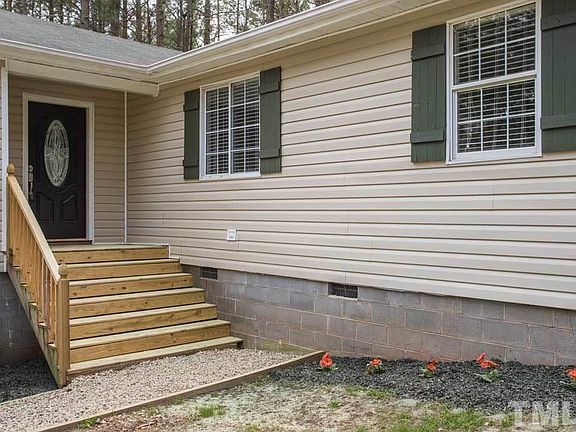 One story living at Lake Royale! New light fixtures throughout home. 8 Foot ceilings. New laminate "wood" flooring and all new carpet. Kitchen with SS appliances (refrigerator, washer, and dryer convey). Laundry closet. Master with walk in closet and bath with tile surround tub/shower combo. 3 Additional bedrooms have large closets and share hall bath with tile flooring and tub/shower combo. New back deck that is only 6 months old. Private, wooded back yard. Walk in crawl space.