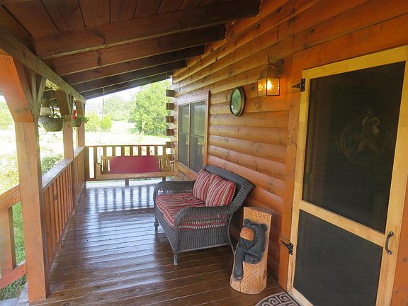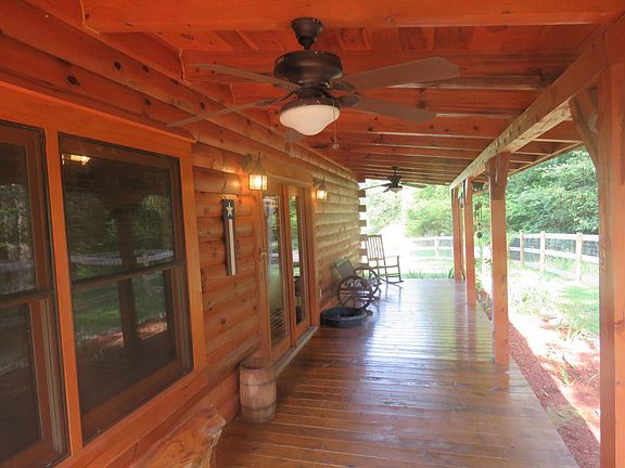 Custom built log cabin with soaring ceilings and beautiful woodwork. Downstairs has the living room, den, kitchen with new gas range and refrigerator, laundry, master bedroom and bath, wood-burning fireplace, covered front and back porches. Large open loft with bedroom and bathroom. Seller since his purchase has put in over 60 fruit/nut trees (pecan, chestnut, english walnuts, blueberry bushes, seedless wine grapes,), pond with a dock, 3 aerators stocked with Tilapia, chicken coop, garden spot, fence on the property line with a gate, workshop, new screen doors front and back doors. Building #2 has been made into a mother-in-law suite with living room, kitchen, bathroom with claw tub, upstairs has a bedroom with closets and storage. New Lennox HVAC 7/20/17. Home has 2 HVAC unit.