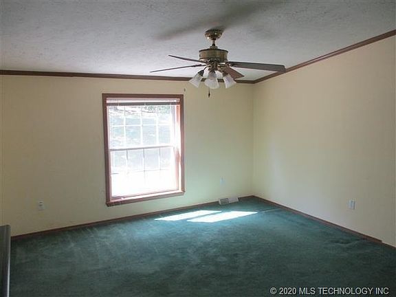 This home offers asphalt circle drive, mature trees for shade. Large 3 car detached garage offers multiple interior storage rooms, sink, bathroom with shower, walk in storm shelter on rear & exterior storage building on left side. Wrap around covered porch, 2 dining, 2 living areas, master bed offers private bath, split floor plan.