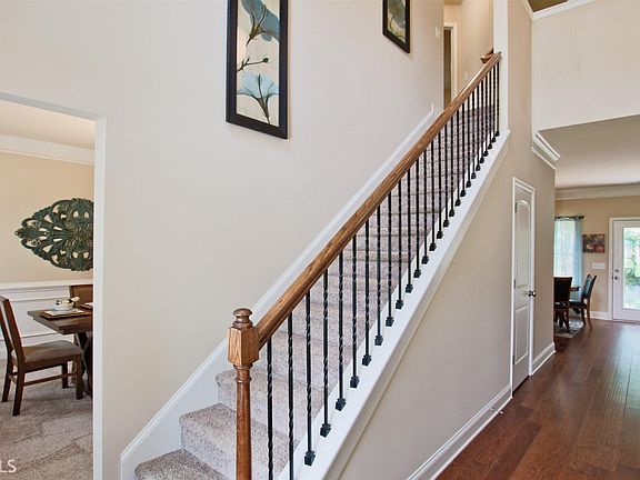 Lanier 2 story plan with all bedrooms upstairs. Large covered front porch leads into the foyer area. Separate dining room adjacent to the chefs kitchen with lots of cabinets and counter space. Large 2 door pantry, island counter bar looking to the eat in area and Family room. Family room with lots of wall space and wood burning fireplace. Upstairs is the master bedroom with double basin sink, walk in shower and separate garden tub with a walk in closet. Laundry room, 3 large bedrooms plus a flex/computer area that overlooks the front foyer. 2 car garage on a just over 1/2 acre lot. Nice size patio out back to BBQ and have the family gatherings.