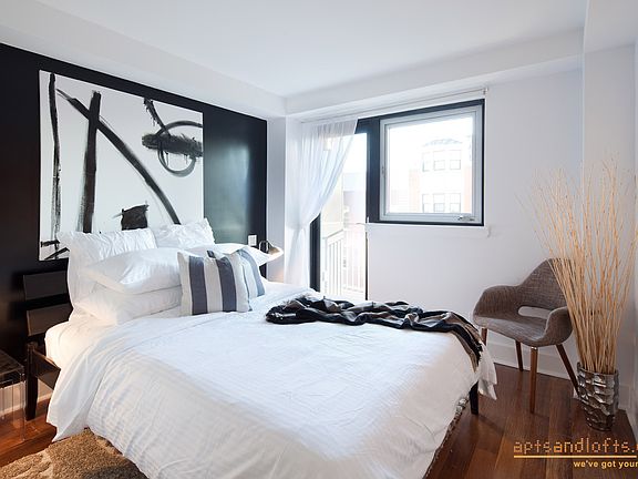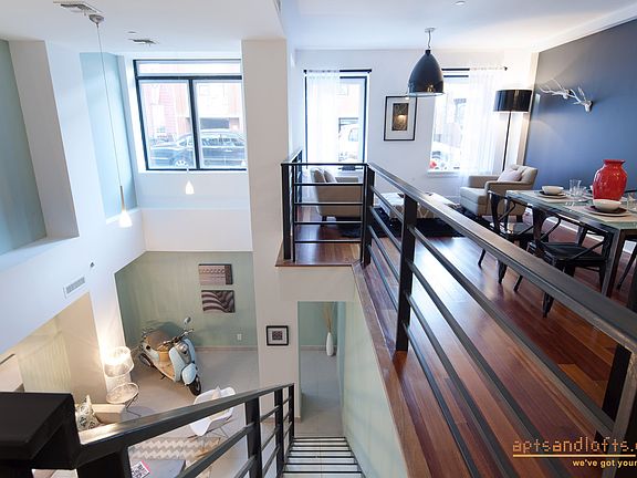 Fabulous 2-bedroom/ 2 bath Duplex condo for short term rental in Greenpoint, Brooklyn. Its Mondrian meets modern at 149 Huron, Greenpoint Brooklyns new high-style place to live and play. From the geometric grid of white and blue on the faade to the rectilinear window panels throughout the apartments, 149 Huron is a departure in design thats refreshing and ready for you. The attention to modern detail inside the loft-like residences is striking. Double-height ceilings and walls punctuated with stunning geometric window panels provide a bright and airy environment. Brazilian teak floors span the open-plan spaces and columns rise up to the ceilings. All units are pre-wired for digital services and some include balcony and deck spaces for extending your living it up space. The kitchens are outfitted to show your style and enhance your culinary pursuits. Cement CaesarStone countertops and stainless steel appliances make an industrial statement thats juxtaposed by the clean lines of the custom wood, lacquer and glass cabinetry that easily hold everything from stemware to gourmet fare. Bathrooms continue the geo-themed detailing with a stunning glass mosaic backsplash, rectangular vessel sink and over-sized square showerheads. The amenities here offer exciting options for chilling out and working out. A landscaped and furnished Zen garden is an oasis of calm ideal for quite contemplation and conversation. The fitness center offers a full suite of cardio and weight equipment for pursuing fitness goals plus a wet and dry steam room. 149 Huron is located in the heart of Greenpoint just footsteps from the shops, clubs and restaurants that are giving the neighborhood an international reputation for creativity and cool. A four-block stroll takes you to the newly emerging waterfront district, while the G train at Greenpoint Avenue is just three blocks away. Available for July and August 2015