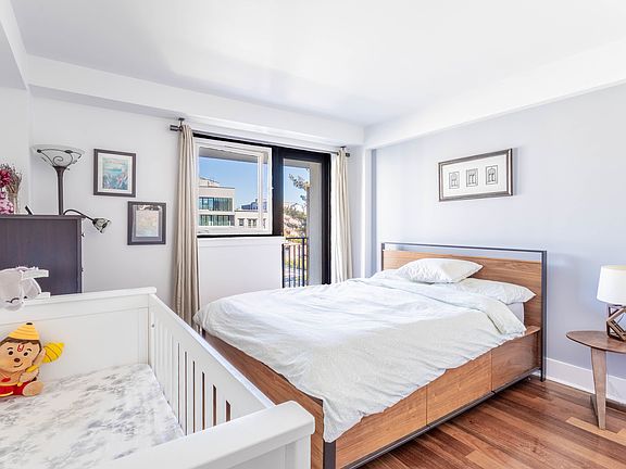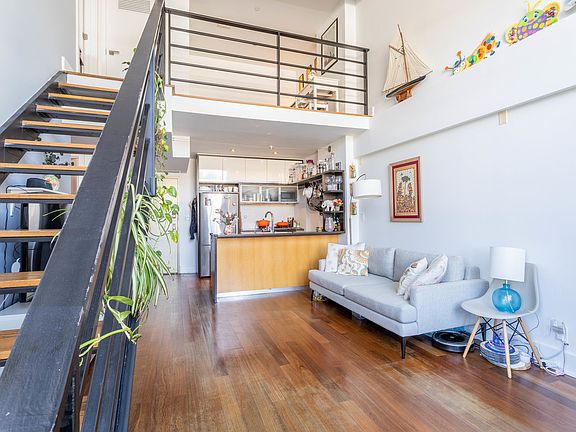 Rarely available two bedroom duplex loft (convertible 3) at 149 Huron Street includes a washer/dryer and 2 outdoor spaces. This gorgeous condo features cathedral double height ceilings and a wall of windows overlooking a back garden, offering wonderful light all day. There is a terrace off of the main living area and an open kitchen with stainless appliances with plenty of room to cook. There are two full bathrooms with soaking tubs, one on each floor, NEST central air conditioning/heating, a video intercom, several spacious closets, beautiful Brazilian hardwood floors throughout, and an in-unit Bosch washer and dryer. The open kitchen has steel appliances, a versatile countertop, and plenty of room for a large dining table. Upstairs, the master bedroom has an en-suite bath and a nice balcony. An open space loft on this level can also be used as an office or an extra living/sleeping area. Built in 2008, 149 Huron is a boutique condo in the heart of Greenpoint ideally situated between Franklin and Manhattan Avenues and close to just one block from the Greenpoint Ave G stop. The Mondrian, as it was originally named is a boutique sized 5-story condominium comprising only 30 residences. The building contains a few key amenities such as an elevator, fitness center, package room, garage parking, a large shared terrace at the buildings rear. This beautiful building is situated on a picturesque, tree-lined street in the heart of Greenpoint's food scene. Noted restaurants like Glasserie, Citroen, Sama Street, Esme, Jungle Cafe, Karczma, Anella, and world-famous Paulie Gee's Slice Shop are just a few of the fantastic dining options that are within a few blocks of this home. There is also great retail and the new waterfront esplanade at Greenpoint Landing. Commuting to midtown is easy from the 7 train just over the Pulaski Bridge, the ferry at India Street or the G train at Greenpoint Avenue. This is truly an amazing home and absolutely a must see. Make your appointment today. BOND New York Properties is a licensed real estate broker that proudly supports equal housing opportunity.