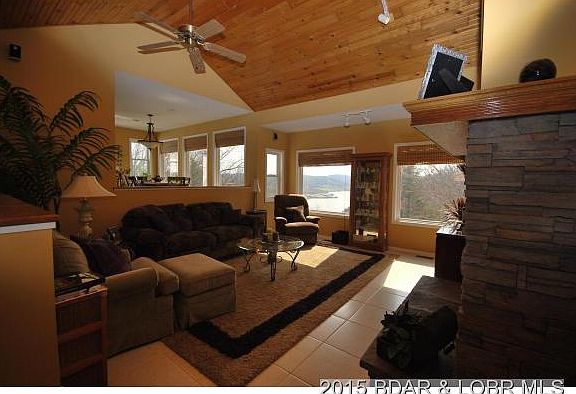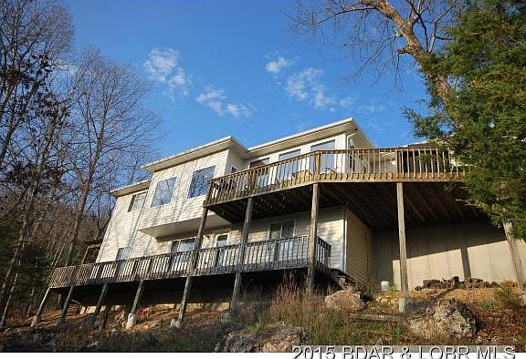 10 MINUTES FROM SCHOOL & SHOWS LIKE NEW! This lake view home features a master suite with 4 piece bath and TWO MORE LARGE BEDROOM SUITES with walk in closets. The SUNKEN LIVING ROOM has a vaulted cedar ceiling, a stacked stone gas fireplace and large windows provide a million dollar view of the Lake of the Ozarks and Old Kinderhook Golf Course. This same view can be seen from every room in the house! Outside 3.3 ACRES ensure lots of privacy. Entertain from the deck off the kitchen, the deck off the lower level family room or the large GAZEBO. The NEW ROOF was installed in August 2014 and the windows have been tinted for energy efficiency. County maintained paved roads all the way to the level driveway & extra parking area.