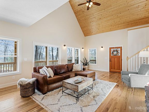 **Multiple offers received. Owners calling for best offers by 11am on Tuesday, April 18th.** Everyday lives like a vacation in this contemporary farmhouse in desirable East Asheville. Convenient to Downtown Asheville yet a world away on a private, serene wooded 0.52 acres which is a hop and a skip from the parkway and the Warren Wilson trails. This home is truly move-in ready with beautiful fit and finishes and the ease of a two-car garage. The open kitchen is an aesthetic and functional workspace as the heart of the home. Escape to the primary on main sanctuary complete with ensuite and spacious walk-in closet. Cozy up to the gas burning fireplace in the living room with cathedral tongue and groove wooden ceilings or head out into the ideal wrap-around porch and take in the winter views among the wooded property. You are sure to have a space for every purpose with the loft on the second level, two additional guest bedrooms and bonus room. Public showings begin after launch event!