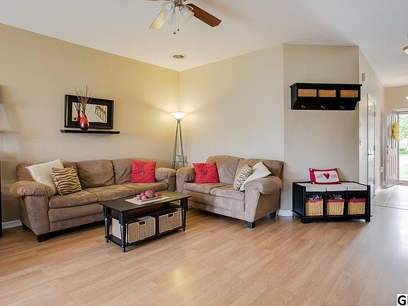 Why rent? This townhome has all new flooring, including carpet, tile kitchen and foyer and laminate family and owners bedroom which has a vaulted ceiling. You will also find updated lighting, new blinds and ceiling fans. Grill or enjoy a night outside on your newer paver patio. Central Air, 1 car garage & All appliances convey. A joy to show!