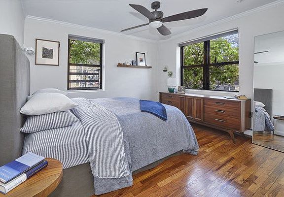 Bright and Charming Two Bedroom A sweet front garden welcomes you to this ten unit walk-up coop building in the center of the Historic District of Fort Greene. Just a block from beautiful Fort Greene Park and close to shopping and restaurants, this bright renovated south and east facing two bedroom, one bath apartment features a spacious comfortable living/dining room. The large open granite countered kitchen with stainless appliances and plentiful cabinetry for storage makes entertaining a breeze. The large master bedroom has a wall of closets, two exposures and a ceiling fan. The good-sized second bedroom which is currently being used as an office also has a wall of closets and a ceiling fan. The bathroom is nicely renovated and there is an in-unit washer/dryer. Storage is available in the basement (for a small monthly fee). Pets are welcome.