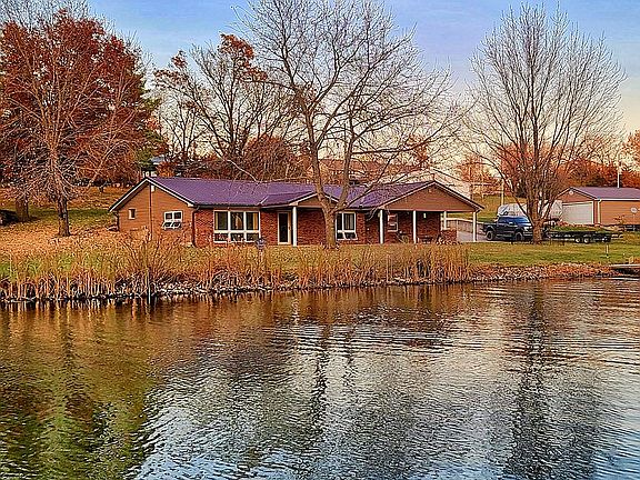 Prime lakefront property located at Lake Marie, just outside of Mercer, Missouri, only a 1.5 hour drive from Des Moines, Iowa. All new high end, waterproof luxury vinyl plank flooring, paint and butcher block countertops, ceiling fans, outlets/switches and MORE. Being sold AS-IS. Dependable High Speed Fiber Optic internet is great for working remotely while enjoying the lake life. The property consists of a 1400 sq. ft. ranch style berm home (brick face and siding on non-earth sides), with a large covered patio, and an oversized two car garage situated on two level lakefront lots with over 200 feet of shoreline and the best views on the lake. The home is wired for generator hook-up. Large cement driveway with plenty of parking. All-weather fiberglass dock with bench in the no-wake cove provides for endless summer fun in the water and the fishing is GREAT! The home has 2 bedrooms, 1 bath, kitchen, a large living room with floor to ceiling front windows with views of the lake and a steel roof for added protection from the elements. Included with the home are the following: Propane tank Refrigerator Gas stove Dishwasher Washer/Dryer 3 bunk beds Queen size memory foam bed 2 Wyze 1080 Wireless Security Cameras/Hub Nest Thermostat HUGE custom area rug in living room Large Lilly Pad for floating in the lake Fishing poles Lawn Chairs Patio Table Water toys/other equipment