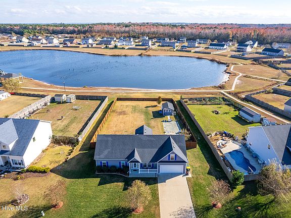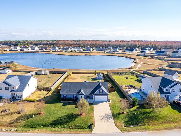 Gorgeous Pool home on a Pond Front Lot! This thoughtfully designed ranch offers comfort, style, and entertainment, inside and out. Step onto the charming covered front porch and enter through the decorative glass oval front door with sidelights into a stunning interior. Hardwood floors Iin bedroom (2024) grace the living room, hallway, and one bedroom, with cove molding adding a touch of elegance to the living, dining, and kitchen areas.The modern kitchen is a chef's delight, featuring under-counter lighting, a sleek new sink, a breakfast bar, and all kitchen appliances included. The primary bathroom boasts a walk-in shower, a tall cabinet, and a linen closet, while the guest bathroom has been updated with a newer cabinet and sink. Ceramic tile flooring (2024) enhances the dining room, kitchen, pantry, bathrooms, and laundry room. Additional touches include ceiling fans, blinds, and a spacious FROG that can serve as the fourth bedroom or a flex space.Outdoor living is unparalleled with a 12x12 screened porch featuring a porcelain floor, an open patio leads to a backyard oasis. The 20x10 in-ground saltwater pool with a robot cleaner is complemented by lush landscaping and a privacy fence that backs up to the community pond. A 15x12 shed with a tiki bar area, ceiling fan, refrigerator, and pool-facing windows completes the perfect entertainment setup. Additional features include a two-car garage with an epoxy floor, a walk-in attic, and access to community amenities such as RV/boat parking, playgrounds, walking trails, picnic shelters, scenic ponds, water fountains, and a dog park. Conveniently located between Chesapeake, VA, and the Outer Banks, NC, this home offers an easy commute to both areas.Don't miss this blend of modern updates and exceptional outdoor living—easy to see.schedule your private tour today