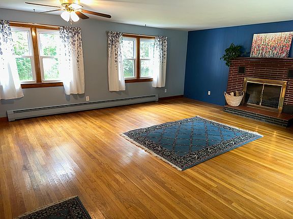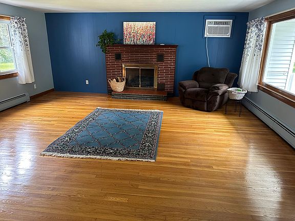 Hardwood and wood flooring throughout and lovingly cared for, this home, built by family has had many amenities and upgrades over the years. The farmer's porch is new, with carefree vinyl rails and treks decking, and invites you into the cozy front-to-back living room, with wood fireplace. The eat-in, fully applianced kitchen offers new counters, sink and two huge pantries. Then there's a separate dining area for extra company, with attractive built-ins. Off the dining is a laundry room, big enough for a bright office atmosphere or can be used as a play room. Three good sized bedrooms, all with hardwood flooring and a renovated, full bath with plenty of space., and a gorgeous tiled, walk-in shower. Extras included double pane vinyl windows, new paint throughout, 7 year new boiler, hot water heater and roof with ice dam wiring, new frig, 8'X10' garage door shed, and a generator hookup.