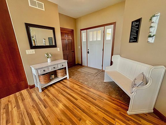 Cul-de-sac living at its best at this well thought out, quality-built, 5 bedroom, 4 bath home resting on just under an acre of tranquility. Reasons to appreciate this property are the open concept floorplan, sizable rooms, windows that capitalize on natural light, a great place to entertain with many gathering spaces, the amazing owner’s suite with a soothing hydrotherapy jetted tub & a great place to unwind, 3 bedrooms on main floor, all living needs on one level, 2 fireplaces, back foyer with laundry, powder room & desk area, in floor heat in lower level, walk-out basement with an abundance of natural light, maintenance free deck; a perfect spot to watch the morning sunrise, & covered lower level patio. Spectacular views overlooking the tranquil & private backyard surrounded by trees (2 plum & 2 apple trees & raspberry bushes). Heated garage with 8' doors. Minutes from bike path. You don’t want to miss the opportunity to call this home.