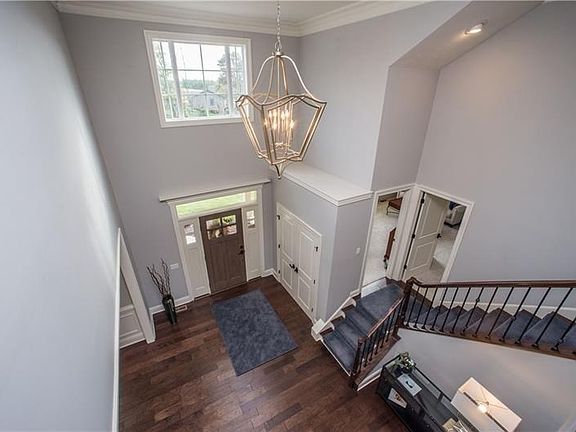 What a great opportunity to have all the benefits of new construction without the wait! This impeccably maintained and tastefully appointed 18 month young custom Benjamin Marcus Home shows like a model home. You will enjoy the convenience of a main floor Owners Suite with pocket doors connecting to the den/sitting room. The sought after open floor plan boasts a 2-story foyer and family room, gorgeous hardwood flooring and custom moldings/trim throughout. The kitchen is stunning with white and espresso cabinetry, leathered granite counters and a walk-in pantry. The family room offers the perfect gathering space and is complete with a gas fireplace with beautiful wood trim. The dining room is spacious w/ tasteful wainscoting. Upstairs are three additional bedrooms, one with a private bath and a Jack N' Jill bath servicing the other 2 bedrooms. A 20x25 covered patio includes a fireplace and a built in Delta Heat Gas Grill. Huge walk out basement, so many upgrades, throughout.