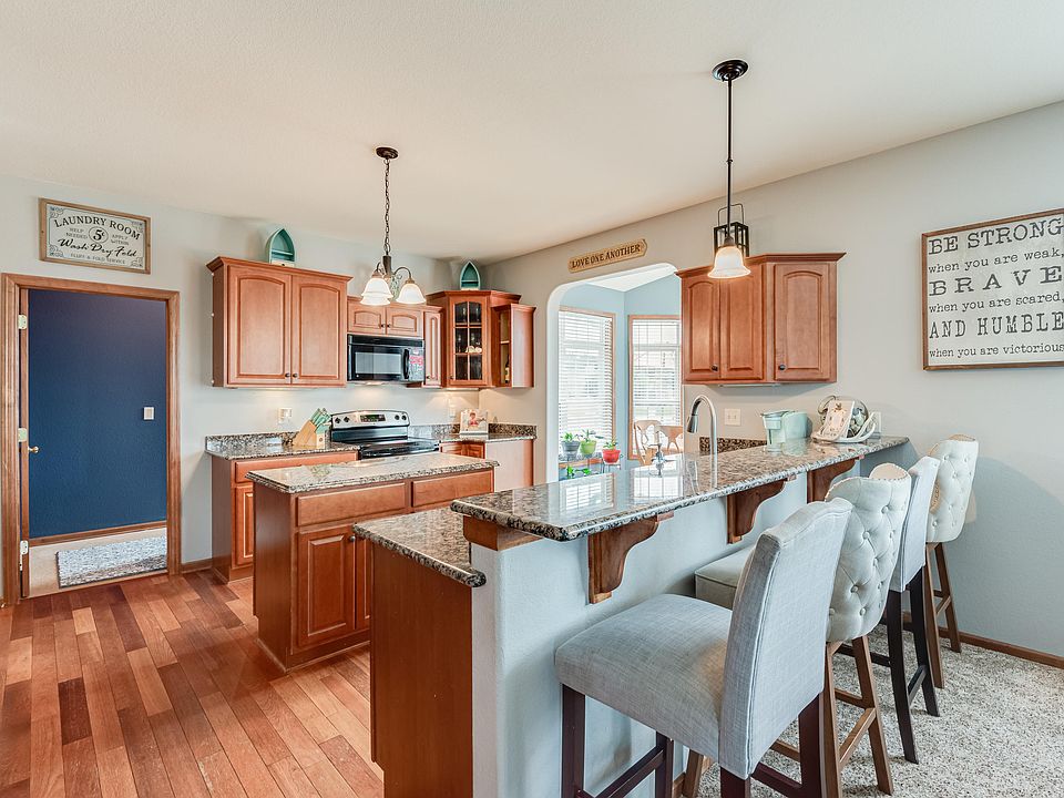 • Appliances: Dishwasher, Refrigerator, Disposal, Dryer, Microwave, Washer, Oven/Range, Water Softener Owned
